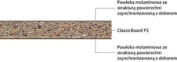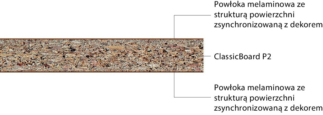 - ClassicBoard P2: Drewnopochodne płyty wiórowe typu P2 łączone za pomocą żywicy mocznikowo -formaldehydowej. Spełniające wymogi normy EN 312, przeznaczone do elementów niekonstrukcyjnych w suchym środowisku.