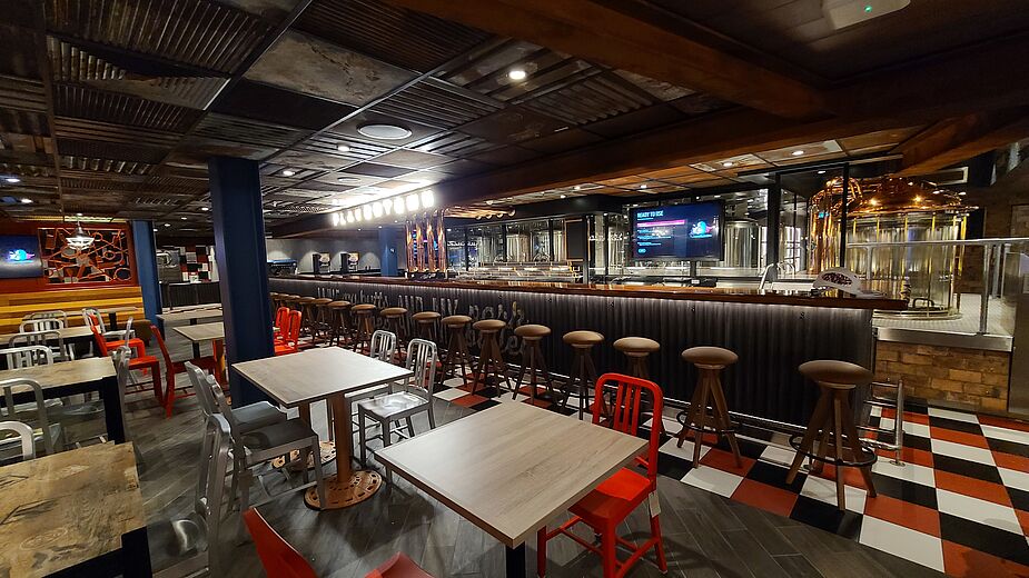 For all safety-relevant areas of application, such as cabin doors, stairwells, connecting corridors and other escape and rescue routes, Pfleiderer not only provides a brilliant appearance, but also ensures that the IMO (International Maritime Organization) fire protection requirements are reliably met thanks to the IMO approval of Duropal HPL. A very special eye-catcher was created in the design of the cabin doors. Here, an HPL decor was processed using the custom printing process, which combines the signature blue of the shipping company with the metal transitions customary in shipbuilding. The "metal strip" was simply printed continuously into the door decor. During processing, extremely precise cutting ensured that it was positioned at the same horizontal height on all doors.