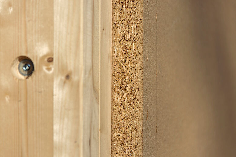 Pfleiderer LivingBoard is a particularly sustainable and healthy solution. "This board is made of low-resin spruce and a formaldehyde-free binder and is therefore the ideal choice for healthy timber frame construction. In addition, LivingBoard is particularly resource-saving because sawmill by-products from PEFC™- or FSC®-certified forests are used in production," explains Olaf Heiden, Area Manager for Engineered Wood at Pfleiderer.
