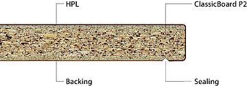 - ClassicBoard P2: Urea resin-bonded particleboard, type P2 conforming to EN 312, suitable for non load-bearing purposes in dry areas.